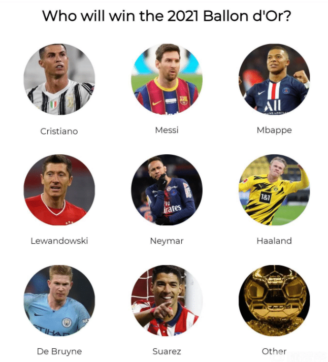 《马卡报》先是给出了金球奖夺奖赔率,其中姆巴佩以1赔3.5排名榜首,莱万是1赔6.5排名第二,而C罗1赔7排名第三。随后是内马尔、德布劳内、B费和哈兰德。而梅西的赔率是1赔15。同时,在问卷调查的支持率方面,姆巴佩获得了31%的支持率排名第一,而莱万只有30%的支持率,梅西有15%的支持率,至于C罗只有4%的支持率,看来大家都看好姆巴佩。