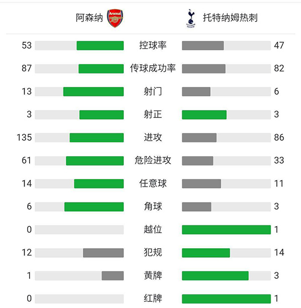 全场战罢,阿森纳2-1逆转战胜热刺。