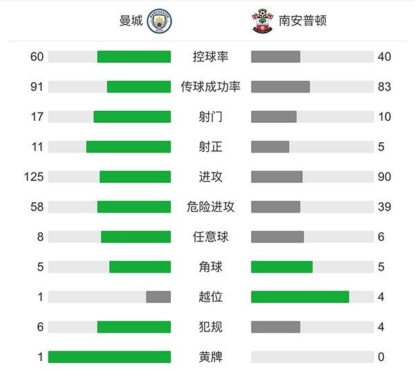 曼城5-2南安普顿 马赫雷斯&丁丁双响福登两助