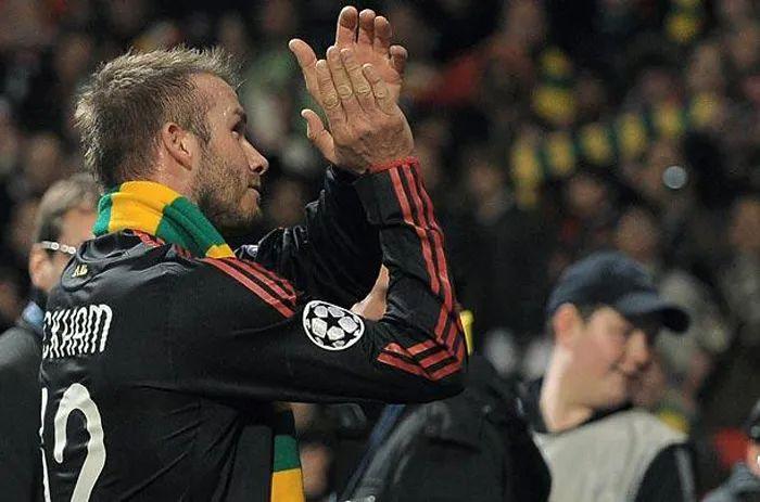 2009/10赛季欧冠,「万人迷」大卫·贝克汉姆倒戈迎战红魔,却得到球迷的热情欢迎。其中,在老特拉福德,曼联4-0大胜米兰,在观众的掌声和欢呼声中,小贝捡起了地上的绿金色围巾,披在身上,默默支持球迷反格雷泽家族的行动。