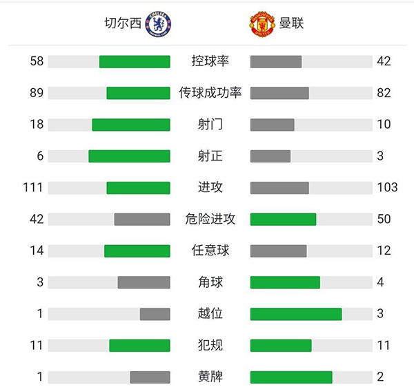 第48分钟,切尔西反击机会,齐耶赫打门被德赫亚扑出,随后詹姆斯跟上再打被封堵出去。