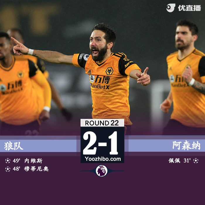 最终,阿森纳1-2狼队,本赛季被对手双杀!
