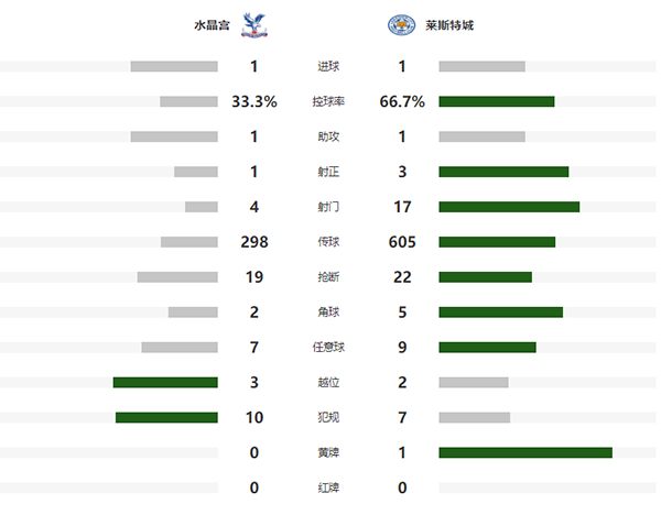 24直播网讯:北京时间12月28日23:00,英超第16轮,水晶宫对阵莱斯特城。上半场伊希纳乔失点,易边再战,扎哈打破僵局,哈维-巴恩斯远射扳平。最终全场比赛结束,水晶宫1-1莱斯特城。