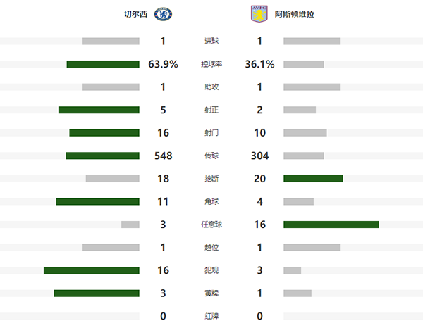 第50分钟,维拉扳平场上比分!卡什右路斜45度传中吊向禁区腹地,埃尔加齐跟进凌空垫射将球送入球网,维拉1-1切尔西。