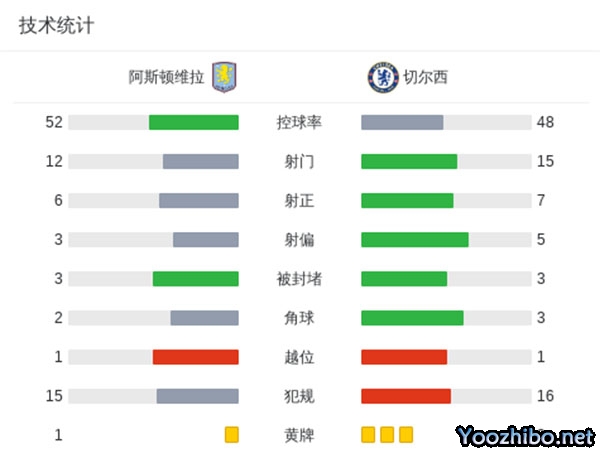 切尔西1-2遭维拉绝杀 阿森西奥双响+绝杀拉师傅两助攻