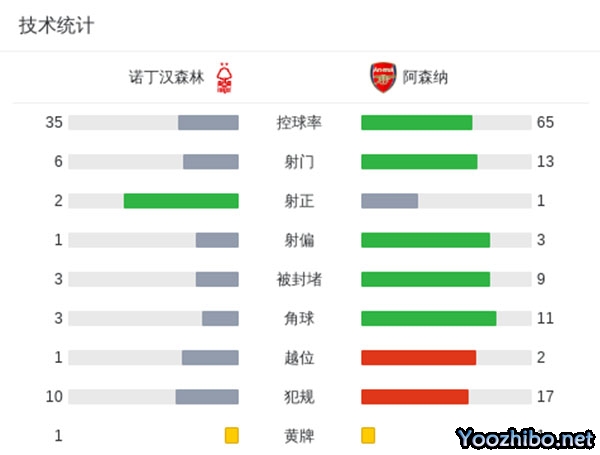 阿森纳0-0森林距榜首10分 卡拉菲奥里中柱拉亚神扑