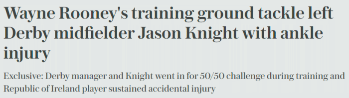 报道表示,由于一线队严重缺人,作为主帅的鲁尼最近也不得不加入到训练课当中,但他不慎将手下的球员铲至脚踝重伤。据悉,被铲伤的球员是20岁的杰森-奈特,他将因此缺阵8至12周的时间,而现在距离新赛季英冠联赛揭幕只有不到2周时间。
