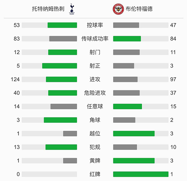 热刺2-0布伦特福德 西索科孙兴慜破门霍伊别尔伤退