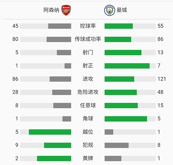 第54分钟,马赫雷斯主罚,选择直接射门左脚兜射打球门左侧,鲁纳尔松扑救脱手失误,皮球被挡了一下后还是飞入球门。阿森纳1-2曼城。