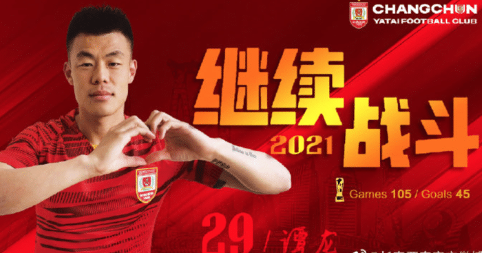 长春亚泰官方: 谭龙与球队续约, 签订新合同