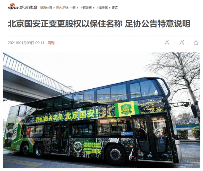 有媒体称,中国足协指的俱乐部应该就是北京国安。之前据相关媒体报道,北京国安为了保住“国安”,中赫集团正在努力收购中信俱乐部的股份,只要中信国安不再是俱乐部的股东,那么北京国安这个名称就能保住!
