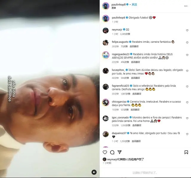 来源:24直播网09-09 12:5524直播网讯 36岁的中场悍将、前广州恒大功勋外援保利尼奥于今日正式宣布退役,结束自己的职业足球生涯。