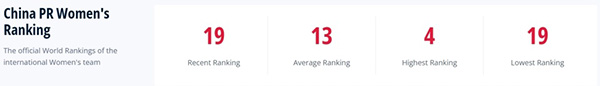 FIFA女足年终排名:中国跌至第19位!追平历史最低,最高曾排第4
